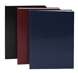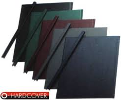 Bei der Hardcoverbindung wird das Papier mit 2 Buchdeckeln in eine Metallschiene gebunden. Hiefür stehen die Farben bordoux, schwarz, blau und grün zur Auswahl.